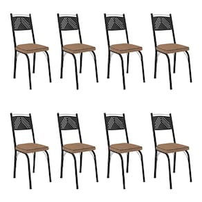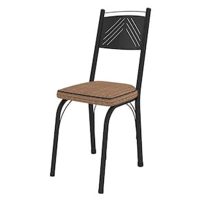 Kit 8 Cadeiras De Cozinha Virginia Estampado Rattan Bege Pés De Ferro Preto - Pallazio