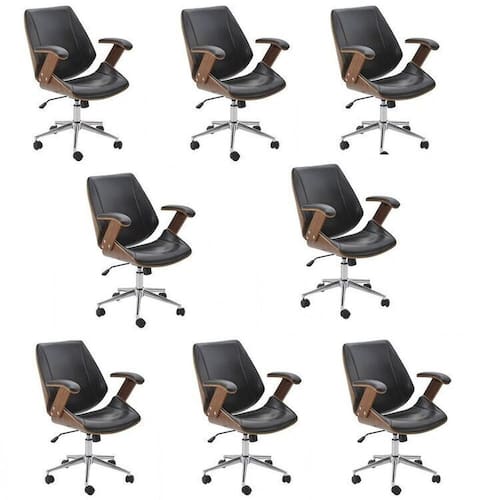 Cadeira office giratória com ajuste de altura, estrutura em madeira com estofado revestido em poliuretano (PU), possui apoio para braços. Base cromada em formato estrela com rodízios em nylon. Altura do Conjunto: 99 cm Ambiente: null Ambiente Principal: Escritório Cor: Preto Cor do Produto: Preto Informação Complementar: 8x Cadeira de Escritório Diretor Giratória Office Lisboa Preto Largura: 63 cm Altura: 99 cm Peso: 15 kg Profundidade: 61 cm Necessita Montagem: Sim