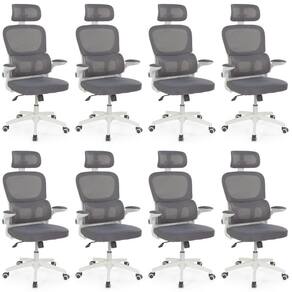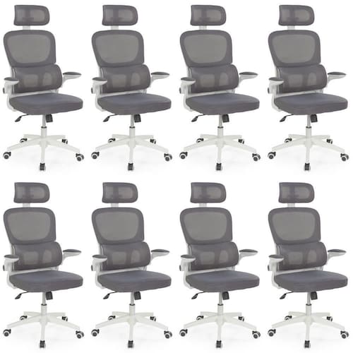 Tonalidade: Cinza | Altura: 126 | Produto: Kit Cadeiras de Escritório | Largura: 50 | Material da Estrutura: Metal e Polipropileno | Cor: Cinza | Peso do Produto: 10 | Fabricante: Magazine Decor | Cômodo Indicado: Escritórios | Número do modelo: 1 | Exige montagem: Sim | Baterias são necessárias?: Não | Certificação de teste externa: Não | Is Fragile: Não | Número de caixas: 4 | Número da peça: 1 | Principais Características do Produto (bullet_point#0): Desperte para o conforto e a produtividade com a nossa Cadeira de Escritório Executiva Viena, uma combinação perfeita entre elegância e funcionalidade. | Principais Características do Produto (bullet_point#1): Seu encosto em tela mesh de alta qualidade, oferece uma experiência única de conforto. | Principais Características do Produto (bullet_point#2): A tela mesh permite uma circulação de ar adequada, mantendo-o fresco e confortável mesmo durante as horas mais longas de trabalho. | Componentes incluídos: 8 Cadeiras | Quantidade de itens: 8 | Dimensões do item P x L x A: 126x100x100 | item_weight: 10