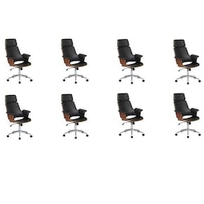 Cadeira office com assento em madeira compensada, revestido em poliuretano (PU) com preenchimento em espuma. Mecanismo com funções up-down e relax. Braços fixos. Base cromada com 320mm diâmetro em formato estrela, com rodízios. Altura do Conjunto: 121 cm Ambiente: null Ambiente Principal: Escritório Cor: Preto Informação Complementar: 8x Cadeira de Escritório Presidente em Sintético e Madeira Coimbra Preto Largura: 67 cm Altura: 121 cm Peso: 15 kg Profundidade: 68 cm Necessita Montagem: Sim