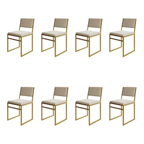 Tipo: Cadeira Modelo: Isa Cor: Bege Base: Dourado Tecido: Veludo Não acompanha mesa