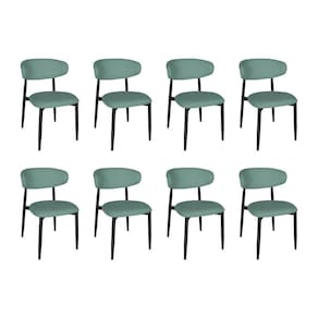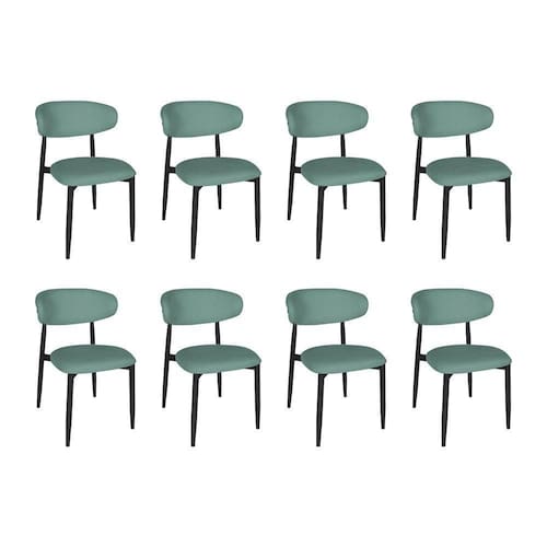 AS IMAGENS SÃO MERAMENTE ILUSTRATIVAS E PODEM SOFRER VARIAÇÕES DE COR E PEQUENOS DETALHES DE ACORDO COM O SEU MONITOR, ILUMINAÇÃO DO AMBIENTE E ATÉ MESMO A SUA PERCEPÇÃO 8 Cadeiras de Jantar Lucy Estrutura AÃo Carbono Laminado Preto com Estofado Linho Verde