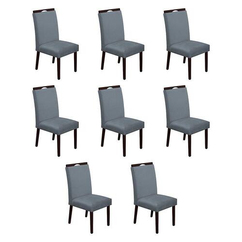 AS IMAGENS SÃO MERAMENTE ILUSTRATIVAS E PODEM SOFRER VARIAÇÕES DE COR E PEQUENOS DETALHES DE ACORDO COM O SEU MONITOR, ILUMINAÇÃO DO AMBIENTE E ATÉ MESMO A SUA PERCEPÇÃO VISUAL.Kit 8 Cadeiras de Jantar Madeira MaciÃa Castanho Premium HeloÃsa Veludo Cinza
