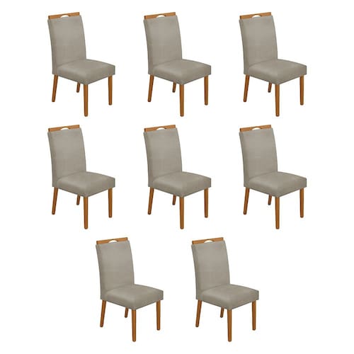Kit 8 Cadeiras de Jantar Madeira Maciça Cerejeira Premium Heloísa Linho Bege