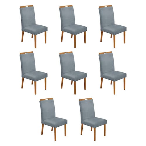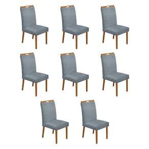 Kit 8 Cadeiras de Jantar Madeira Maciça Cerejeira Premium Heloísa Linho Cinza