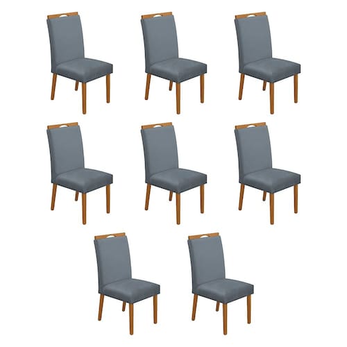 Kit 8 Cadeiras de Jantar Madeira Maciça Cerejeira Premium Heloísa Veludo Cinza