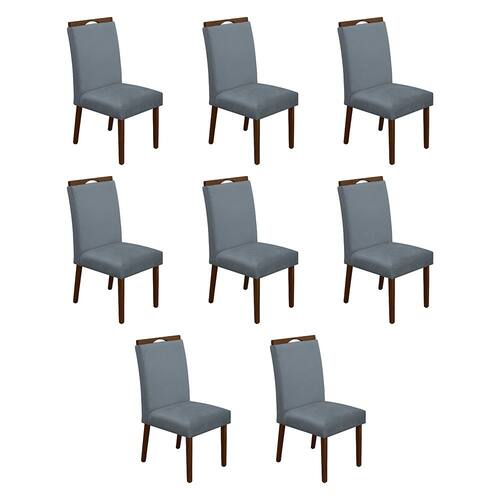 Kit 8 Cadeiras De Jantar Madeira Maciça Natural Premium Heloísa Veludo Cinza