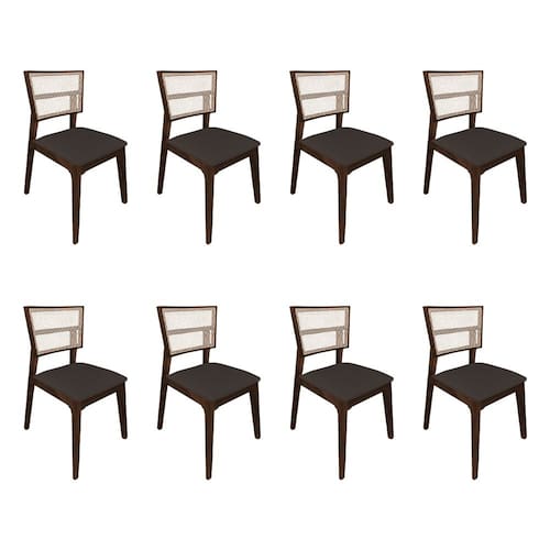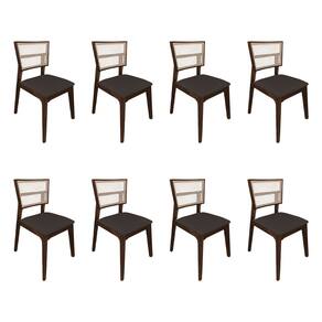 Kit 8 Cadeiras De Jantar Manuela Em Tela Assento Veludo Marrom Base Em Madeira Maciça - Natural