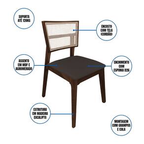 KIT 8 CADEIRAS DE JANTAR MANUELA EM TELA ASSENTO VELUDO MARROM BASE EM MADEIRA MACIÇA - NATURAL