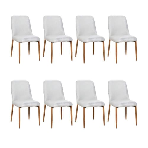 AS IMAGENS SÃO MERAMENTE ILUSTRATIVAS E PODEM SOFRER VARIAÇÕES DE COR E PEQUENOS DETALHES DE ACORDO COM O SEU MONITOR, ILUMINAÇÃO DO AMBIENTE E ATÉ MESMO A SUA PERCEPÇÃO 8 Cadeiras de Jantar Montana Estrutura AÃo Carbono Laminado Natural com Estofado Linho Cru