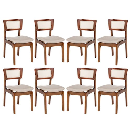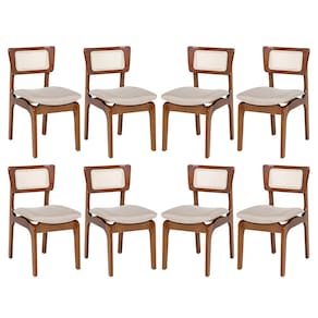 Kit 8 Cadeiras de Jantar Portugal em Madeira Imbuia Encosto Tela Rattan Linho Bege M58