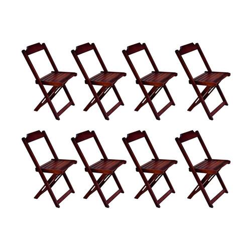 Kit 8 Cadeiras De Madeira Dobravel Imbuia é ideal para bares, restaurantes, estabelecimentos, áreas de lazer e tambem para sua casa. Feito em madeira maciça, tornando resistentes e duráveis. Seu design permite que seja encaixado em qualquer ambiente, trazendo um toque a mais para seu estabelecimento. Além de sua durabilidade, o que lhe trará conforto para servir seus clientes. Por ser dobrável torna-se mais fácil guardar, manusear e limpar o produto. Atenção: EVITE USAR PRODUTOS ABRASIVOS E QUíMICOS PARA LIMPEZA DO PRODUTO, aconselha-se o uso de pano umedecido para melhor conservação; mantenha o produto fora de chuva e sol constantes. CADEIRA Cor: Imbuia Modelo: Dobravel Dimensões: Altura 80 | Largura 45 | Profundidade 42