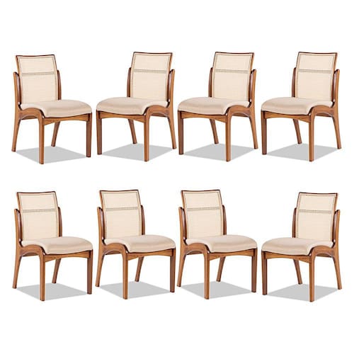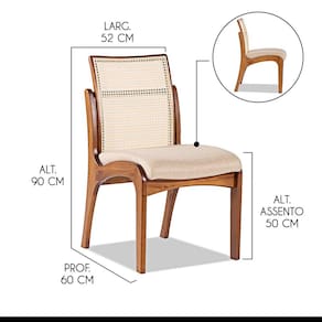 Ei, você aí! Está procurando por uma cadeira que seja a estrela do seu espaço? Então, você precisa conhecer a Cadeira Lisboa! Com um design moderno, ela é capaz de deixar qualquer ambiente mais sofisticado e confortável. Além disso é uma cadeira versátil que pode combinar com diversos ambientes da sua casa, dando um toque único. A Cadeira Lisboa é produzida com madeira maciça sustentável proveniente de reflorestamento com alta qualidade e resistência. Então não perca mais tempo e venha conhecer nosso catálogo e deixar sua casa mais completa e cheia de estilo. CARACTERÍSTICAS TÉCNICAS: - Produzido em Madeira Maciça Sustentável - Acabamento em Verniz na cor Imbuia - Encosto com Revestimento em Rattan com Fibra de Algodão Sextavada na cor Bege - Assento Estofado Preenchido com Espuma D23 - Revestimento do Assento em Linho na cor Bege M58 - Cadeira Entregue Montada *Kit Composto por OITO Cadeiras INFORMAÇÕES TÉCNICAS: Altura Total: 90 cm Altura Chão até Assento: 50 cm Altura Encosto: 44 cm Largura Total: 52 cm Largura do Assento: 48 cm Profundidade Total: 60 cm Profundidade Assento: 56 cm Peso: 8 kg INFORMAÇÕES ADICIONAIS: Garantia para defeitos de fabricação conforme Código de Defesa do Consumidor. - Produto em madeira maciça natural, podendo ocorrer variação no tom ou cor da madeira. - As imagens ambientadas são meramente ilustrativas e podem apresentar itens que não compõe o produto, as cores do produto podem variar de acordo com o monitor, a iluminação do ambiente ou sua percepção visual. - Limpeza: Deve ser feita com pano macio e seco ou levemente umedecido com água e sabão neutro. Não devem ser utilizados abrasivos.