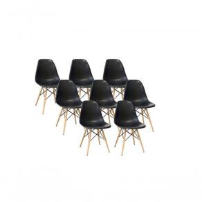 Kit 8 Cadeiras Eiffel Charles Eames Wood Base Madeira Preta Cadeira Eiffel Eames Base Madeira A CADEIRA CHARLES EAMES EIFFEL foi criada nos anos 50, é vencedora do Museu de Nova York da concorrência Design de Mobiliário Low-Cost Arte Moderna Internacional. Sua base é em MADEIRA no formato de uma torre faz com que o ambiente não fique sobrecarregado. Adequa-se perfeitamente para compor conjunto de mesa de jantar ou qualquer outro ambiente em sua casa ou escritório. Ideal para receber amigos e familiares com um toque de elegância e charme. As pernas da cadeira são em madeira e fios de aço preto no qual garantem estabilidade à cadeira.