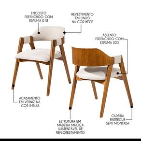 Você está buscando uma cadeira que seja o destaque do seu ambiente? Então, você precisa conhecer a Cadeira Lua! Com um design moderno e elegante, ela é capaz de conceder maior conforto a qualquer espaço. Além de sua beleza estética, a Cadeira Lua é incrivelmente versátil e pode ser usada em diversos ambientes da sua casa, trazendo um toque único a cada um deles. Produzida com madeira maciça sustentável de alta qualidade e resistência, você pode ter certeza de que esta cadeira durará por muitos anos. Não perca mais tempo procurando a cadeira perfeita. Então não perca mais tempo e venha conhecer nosso catálogo e deixar sua casa mais completa e cheia de estilo com todos os produtos da Rio Madeira Interiores. CARACTERÍSTICAS TÉCNICAS: - Produzido em Madeira Maciça Sustentável - Acabamento em Verniz na cor Imbuia - Assento Estofado Preenchido com Espuma D23 - Encosto Estofado Preenchido com Espuma D18 - Revestimento Impermeável em Linho Bege L60 - Cadeira Entregue Semi Montada *Kit Composto por OITO Cadeiras INFORMAÇÕES TÉCNICAS: Altura Total: 80 cm Altura Chão até Braço: 69 cm Altura Chão até Assento: 50 cm Altura Encosto: 32 cm Largura Total: 62 cm Largura do Assento: 55 cm Profundidade Total: 60 cm Profundidade Assento: 53 cm Peso: 8 kg INFORMAÇÕES ADICIONAIS: Garantia para defeitos de fabricação conforme Código de Defesa do Consumidor. - Produto em madeira maciça natural, podendo ocorrer variação no tom ou cor da madeira. - As imagens ambientadas são meramente ilustrativas e podem apresentar itens que não compõe o produto, as cores do produto podem variar de acordo com o monitor, a iluminação do ambiente ou sua percepção visual. - Limpeza: Deve ser feita com pano macio e seco ou levemente umedecido com água e sabão neutro. Não devem ser utilizados abrasivos. Marca: Rio Madeira Interiores