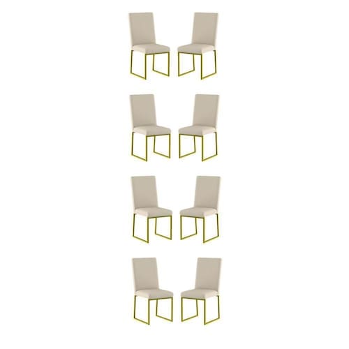 Você receberá quatro volumes, ou seja, apenas Oito Cadeira Estofada para Mesa de Jantar com Base Industrial Dourado.