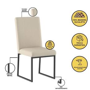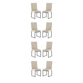 Kit 8 Cadeiras Estofadas Base De Ferro Preto Para Mesa Jantar Bege