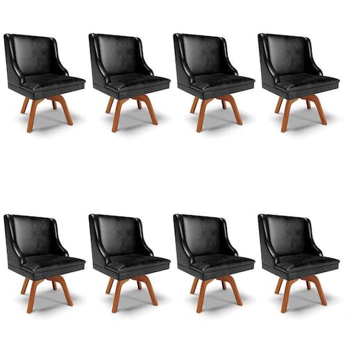 O Kit 8 Cadeiras Estofadas Base Giratória de Madeira Lia Sintético Premium Preto, da Ibiza, é encantador e agrega um toque de sofisticação no ambiente! Vem conferir!