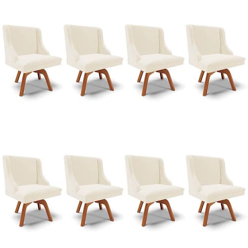 Se você procura por elegância, conforto e qualidade, nós temos exatamente o que você precisa, confira o Kit 8 Cadeiras Estofadas Base Giratória de Madeira Lia Veludo Bege da Ibiza e transforme a decoração da sua Sala de Jantar!