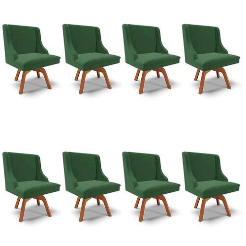 Se você procura por elegância, conforto e qualidade, nós temos exatamente o que você precisa, confira o Kit 8 Cadeiras Estofadas Base Giratória de Madeira Lia Veludo Verde Esmeralda da Ibiza e transforme a decoração da sua Sala de Jantar!
