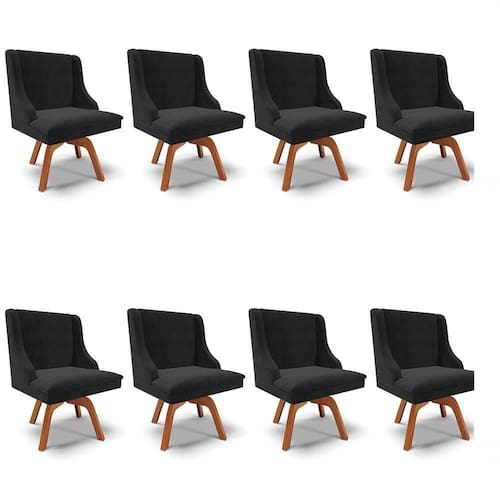Ter uma Sala de Jantar confortável com um toque de sofisticação é possível, vem conhecer o Kit 8 Cadeiras Estofadas Giratória para Sala de Jantar Lia Suede Preto, da Ibiza e surpreenda-se!