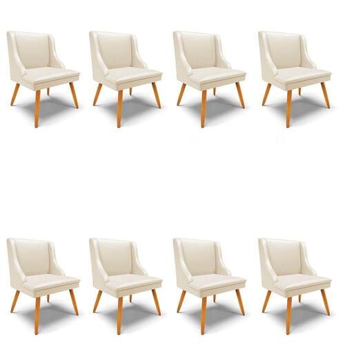 Conforto e estilo são as palavras que definem o Kit 8 Cadeiras Estofadas para Sala de Jantar Pés Palito Lia Sintético Bege, da Ibiza, confira os detalhes e se encante!