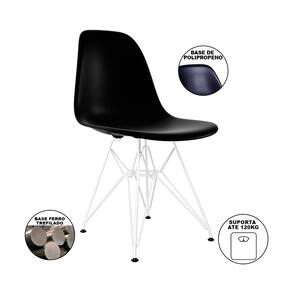 Kit 8 Cadeiras Jantar Assento Preto Eiffel Eames Base Ferro Branco