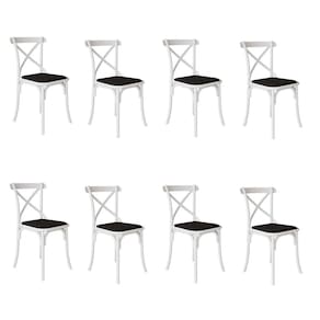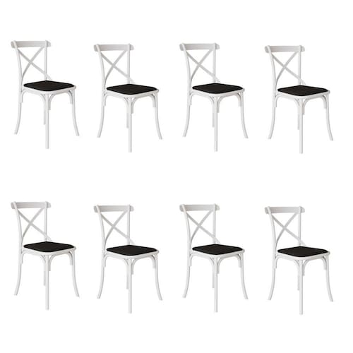 Kit 8 Cadeiras Katrina Assento Corano Preto Aço Branco