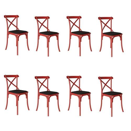 AS IMAGENS SÃO MERAMENTE ILUSTRATIVAS E PODEM SOFRER VARIAÇÕES DE COR E PEQUENOS DETALHES DE ACORDO COM O SEU MONITOR, ILUMINAÇÃO DO AMBIENTE E ATÉ MESMO A SUA PERCEPÇÃO VISUAL.Kit 8 Cadeiras Katrina Assento Corano Preto AÃo Vermelho