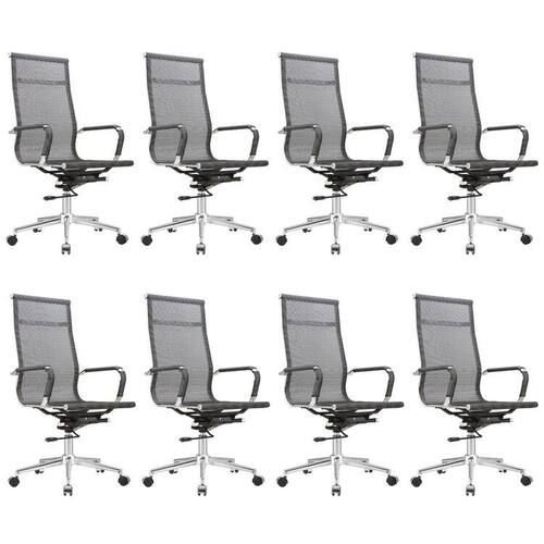 A cadeira Sydney Presidente é toda em tela com aço cromado. A tela garante resistência e conforto para quem estiver usando, além de também possuir seus braços revestidos, para que a pele não entre em contato com o metal direto. Ela possui um assento alongado, o que a torna perfeita para salas de diretoria e mesas de reunião, além de possuir o sistema relax para que seja melhor para seus usuários, travando na vertical, ou balançando de acordo com o movimento do corpo. Altura do Conjunto: 113 cm Ambiente: null Ambiente Principal: Escritório Cor: Cinza Informação Complementar: 8x Cadeira Para Escritório Presidente Giratória Aço Cromado Sidney Cinza Largura: 56 cm Altura: 113 cm Peso: 9,47 kg Profundidade: 60 cm Necessita Montagem: Sim