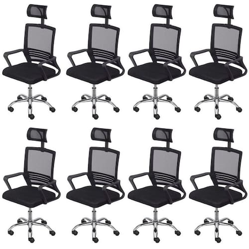 A cadeira office Lyon alta possui estrutura e encosto em Nylon com tela mesh , base giratória cromada com rodas em PU que não danificam o piso. Ela proporciona conforto e praticidade ao usuário é Ideal para aperfeiçoar e decorar seu escritório, sala de reunião e home office. Altura do Conjunto: 121 cm Ambiente: null Ambiente Principal: Escritório Cor: Preto Informação Complementar: 8x Cadeira Para Escritório Presidente Lyon Alta em Tela Mesh Preto Largura: 57,5 cm Altura: 121 cm Peso: 9 kg Profundidade: 51 cm Necessita Montagem: Sim