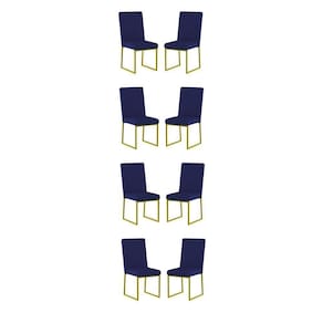 Você receberá 4 volumes, ou seja, oito Cadeiras Estofadas para Mesa de Jantar com Base Industrial Dourado.