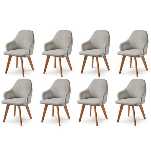A cadeira Manuela é uma opção refinada e prática para completar sua mesa de jantar. Construída com materiais de alta qualidade, sua estrutura em MDF prensado proporciona uma base sólida e uniforme, garantindo resistência e durabilidade ao longo do tempo. O estofado, elaborado com espuma D28, oferece o suporte ideal para desfrutar de momentos prolongados à mesa, seja em refeições em família ou ao receber convidados. Sua base fixa assegura estabilidade e segurança, adicionando um toque de estilo e praticidade ao ambiente da sala de jantar. Almofada do assento: Fixa Altura do assento até o chão: 45 cm Ambiente Principal: Sala de Jantar codigo_ean: 7900288282262 Cor: Cinza Cor do Produto: Cinza Dimensões do assento: 45 cm Enchimento do Assento: Espuma D-28 Enchimento do Encosto: Espuma D-28 Itens Inclusos: 8 Cadeiras Linha ou Coleção: Manuela Marca: Zurc Decor Material dos Pés: Madeira Material Principal: Eucalipto Necessita Montagem: Não Origem do Produto: Nacional Peso: 15 kg Possui Assento/Encosto Estofados: Possui Encosto e Assento Estofados Possui Rodízio: Não Quantidade de Itens: 8 Recomendações de Uso, Manutenção e Limpeza: Utilizar aspirador de pó, escova com cerdas macias ou limpeza a seco. Não utilizar produtos químicos, abrasivos ou limpeza a vapor. Evitar exposição prolongada ao sol. Revestimento do Assento: Linho Tipo de Assento: Fixo Marca: Não Informado