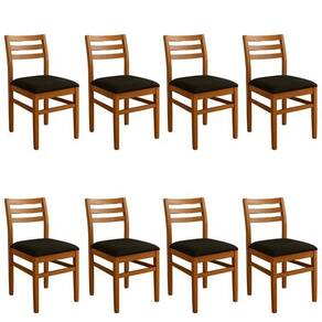 O design Respigada, com encosto anatômico, oferece conforto e ergonomia, proporcionando uma experiência única. O estofamento é feito com espuma D28 de alta densidade e revestido em Courvin, garantindo maciez e elegância. Aposte em qualidade e sofisticação para transformar seu ambiente! Acabamento: Verniz Altura do Conjunto: 88 cm Ambiente: null Ambiente Principal: Sala de Jantar codigo_ean: 7900288219053 Cor: Mel/Preto Cor do Produto: Mel/Preto Informação Complementar: 8x Cadeira Madeira Maciça para Sala de Jantar Diamante Madeira Mel/Preto Largura: 41 cm Altura: 88 cm Peso: 8 kg Profundidade: 44 cm Necessita Montagem: Não