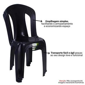 Características Técnicas: Produzida em polipropileno Confortável, resistente e com design moderno Produto monobloco, empilhável e fácil de limpar e transportar Não possui braço Conjunto 2 cadeiras plásticas preto Capacidade de até 182 kg Certificada pelo Inmetro