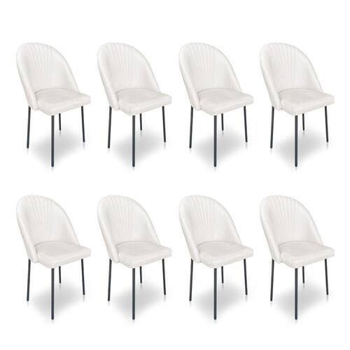 Kit 8 Cadeiras Poltrona De Jantar Ariel Suede Pés De Ferro Preto - Pallazio Cor Verde