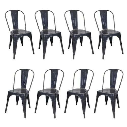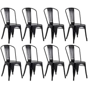 Kit 8 Cadeiras Tolix Iron Ferro Preta Fosca Aço Industrial Sala Cozinha Jantar Bar - Preto