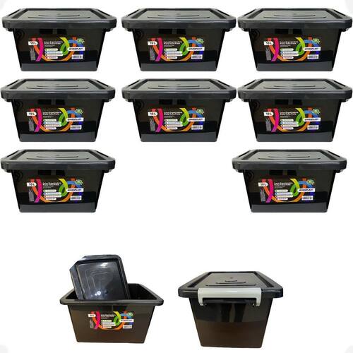 Caixa organizadora preta 10l empilhável trava e rodizio