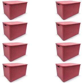 Kit 8 Caixa Organizadora Rattan Decorativa com Tampa ORGANIZADOR RATTAN com TAMPA 07 LITROS - ROSA