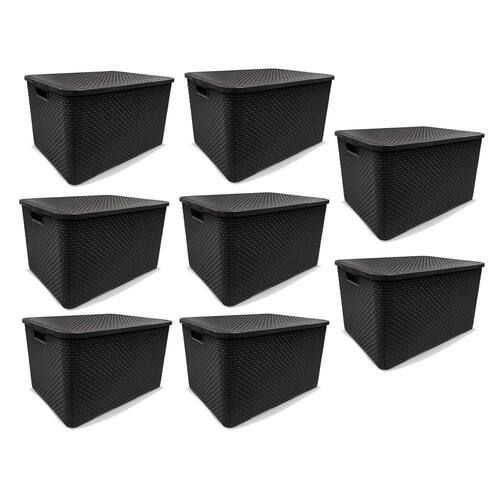 Kit 8 Caixas Organizadoras Rattan PRETA 15 Litros Arqplast Kit 8 Caixas Organizadoras Rattan PRETA 15 Litros ArqplastAixa organizadora em plástico com tampa, que facilita a organização De guarda roupas e armários, por ser uma peça charmosa expor em Ambientes abertos dá um toque especial a decoração. Combina com vários ambientes, como cozinha, sala, banheiro e quarto. Material - Polipropileno DescriçãoDimensões:345 X 255 X 700mm Corpo 365 X 275 X 140mm Tampa comprimento x largura x altura medida do produtoDimensões: 345 X 260 X 180mm comprimento x largura x altura