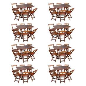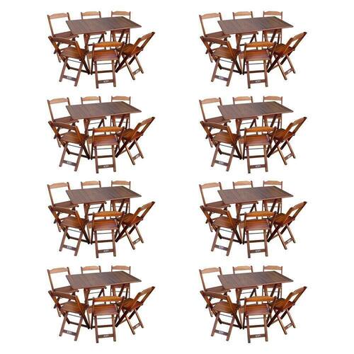 Kit 8 Conjuntos De Mesa Dobráveis De Madeira 70x110cm Com 6 Cadeiras ImbuiaO Conjunto Dobrável é ideal para bares, restaurantes, estabelecimentos, áreas de lazer e também para sua casa. Em madeira tornando-os resistentes e duráveis, seu design permite que esse conjunto seja encaixado em qualquer ambiente, trazendo um toque a mais para seu estabelecimento. Além de sua durabilidade, o que lhe trará conforto para servir seus clientes. Por ser dobrável torna-se mais fácil guardar, manusear e limpar o produto.Tipo: ConjuntoModelo: DobrávelCor: ImbuiaMEDIDASDIMENSÕES DA MESAAltura 77cmLargura: 110cmProfundida: 70cmDIMENSÕES DA CADEIRAAltura da cadeira aberta 78cmAltura da cadeira fechada 89cmAltura até o assento 46cmLargura 41,5cmLargura vão do assento 37,5cmProfundidade 40cmProfundidade do assento 32cmATENÇÃO: EVITE USAR PRODUTOS ABRASIVOS E QUÍMICOS PARA LIMPEZA DO PRODUTO, aconselha-se o uso de pano umedecido para melhor conservação; mantenha o produto fora de chuva e sol constantes.IMAGENS MERAMENTE ILUSTRATIVAS, PODENDO HAVER UMA PEQUENA VARIAÇÃO DA TONALIDADE DA COR DEPENDENDO DE CADA TELA, MONITOR E ATÉ MESMO PERCEPÇÃO VISUAL DE CADA UM.Kit 8 Conjuntos de Mesa DobrÃveis de Madeira 70x110cm com 6 Cadeiras Imbuia
