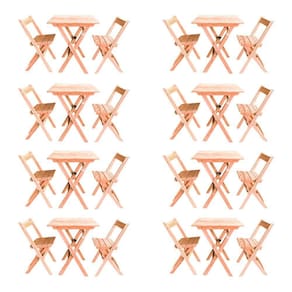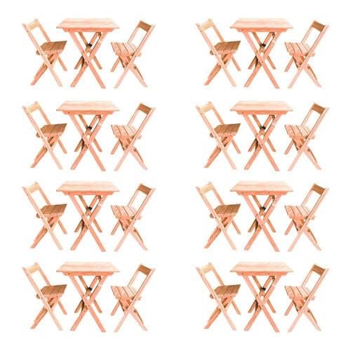 AS IMAGENS SÃO MERAMENTE ILUSTRATIVAS E PODEM SOFRER VARIAÇÕES DE COR E PEQUENOS DETALHES DE ACORDO COM O SEU MONITOR, ILUMINAÇÃO DO AMBIENTE E ATÉ MESMO A SUA PERCEPÇÃO VISUAL.Kit 8 Conjuntos Mesa DobrÃvel Para Bar E Restaurante 60x60cm Com 2 Cadeiras Em Madeira MaciÃa - Cru