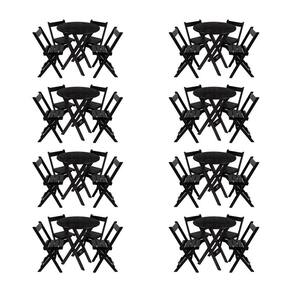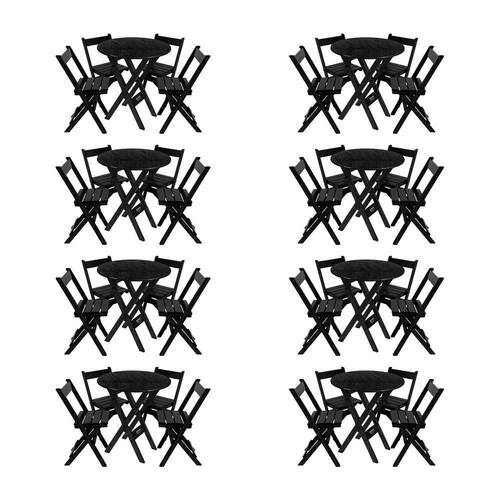 AS IMAGENS SÃO MERAMENTE ILUSTRATIVAS E PODEM SOFRER VARIAÇÕES DE COR E PEQUENOS DETALHES DE ACORDO COM O SEU MONITOR, ILUMINAÇÃO DO AMBIENTE E ATÉ MESMO A SUA PERCEPÇÃO VISUAL.Kit 8 Conjuntos Mesa Redondo 70cm DobrÃvel Com 4 Cadeiras Em Madeira MaciÃa - Preto