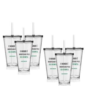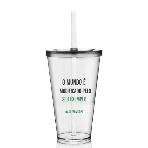 Kit eco com copos com tampa e canudo eco personalizados para ajudar o meio ambiente. Adote o seu copo e evite descartáveis. Juntos somos mais fortes. Confira as opções de copos, taças e canecas ecológicas personalizadas. Especificações: Material: Acrílico PS Altura: 14,5 cm Diâmetro: 9,5 cm Capacidade: 550 ml Cor: Transparente Quantidade: 8 peças
