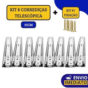 INCLUI NO KIT: 8 Corrediças 35cm. 32 Parafusos 3,5x16.