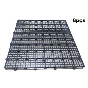 para cada metro quadrado são utilizadas 8 peças. Encaixe modular perfeito, que possibilita montagem na largura e no comprimento dos estrados de plástico.