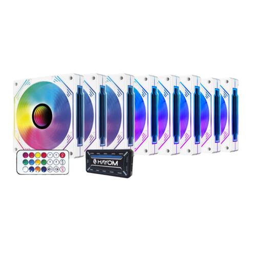 Kit 8 Fan Hayom RGB 120mm C/ Controladora Branco – FC1309