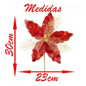 • 8 Flores Artificiais Vermelha Com Dourado 30cm;
