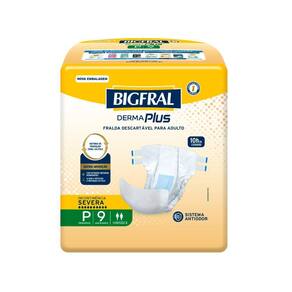 O Kit contém: 8 pacotes de Fraldas Geriátricas Bigfral Derma Plus P com 9un cada.