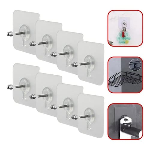 Kit 8 Gancho Adesivo Parafuso Multiuso Pedurar Transparente